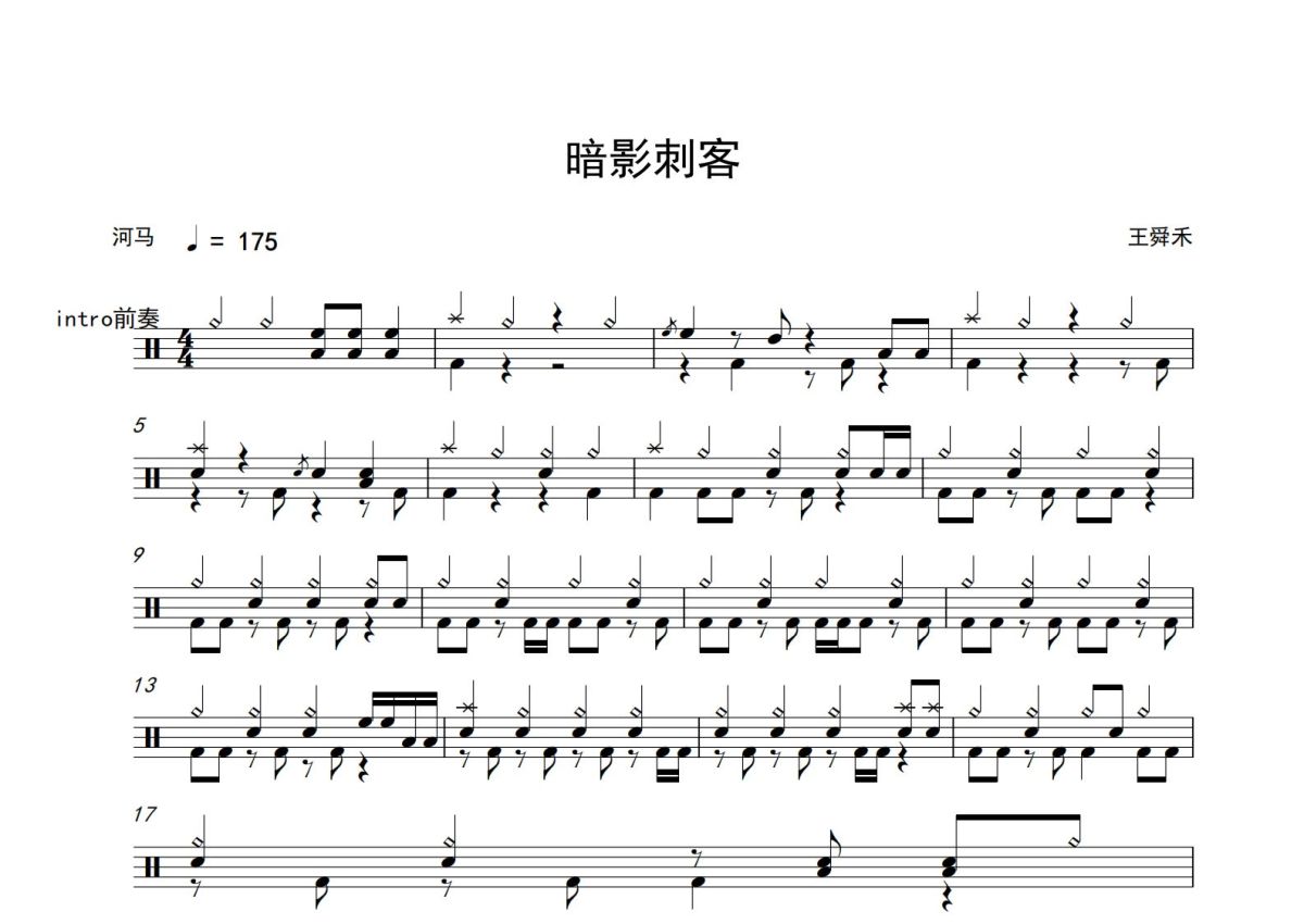 王舜禾《暗影刺客》鼓谱 - 架子鼓谱