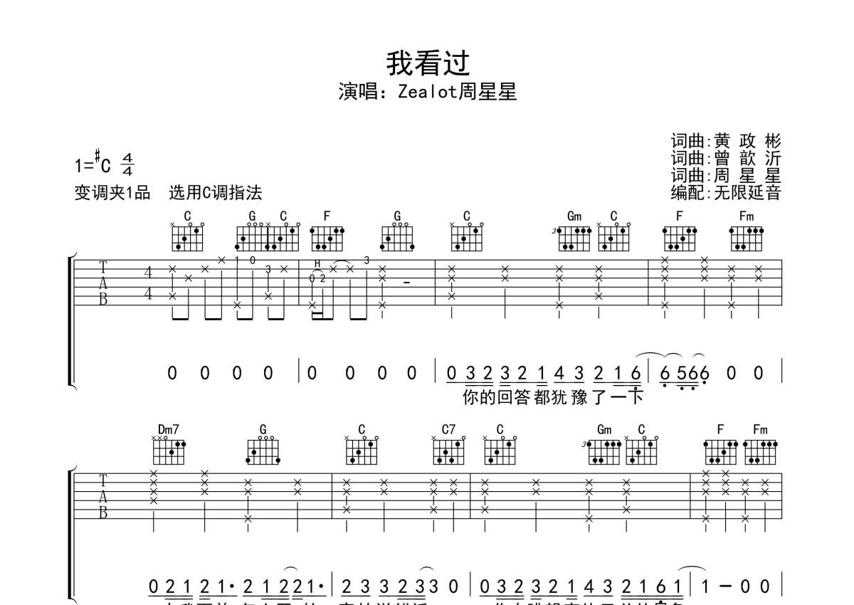 Zealot周星星《我看过》吉他谱 - C调弹唱六线谱