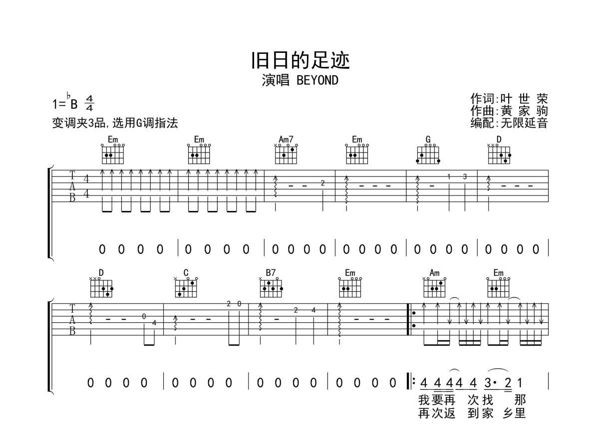Beyond《旧日的足迹》吉他谱 - G调弹唱六线谱