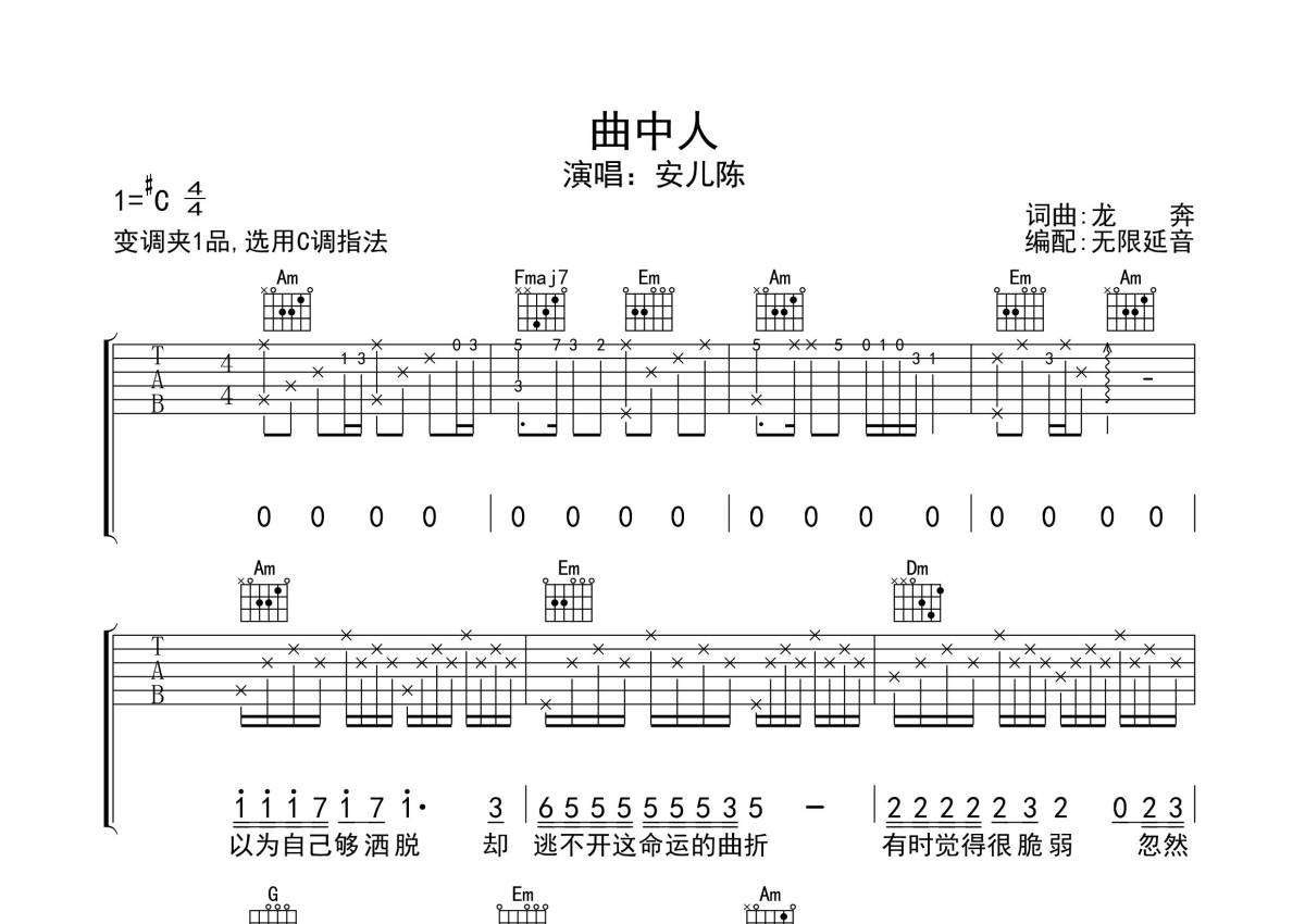安儿陈《曲中人》吉他谱 - C调弹唱六线谱