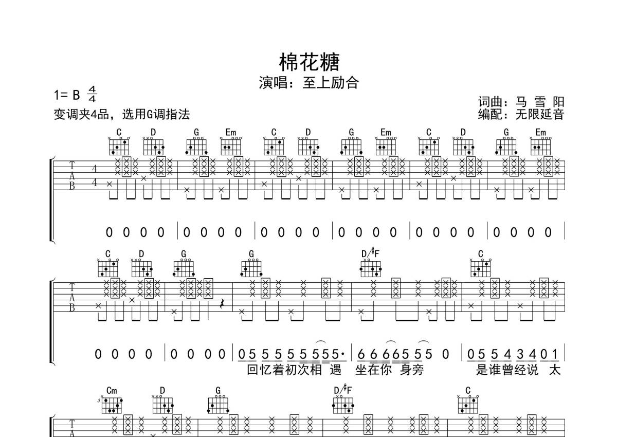 至上励合《棉花糖》吉他谱 - G调弹唱六线谱
