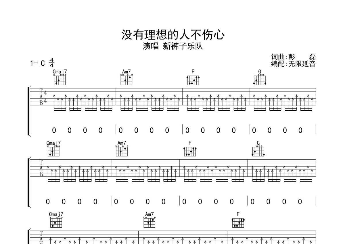 新裤子乐队《没有理想的人不伤心》吉他谱 - C调弹唱六线谱