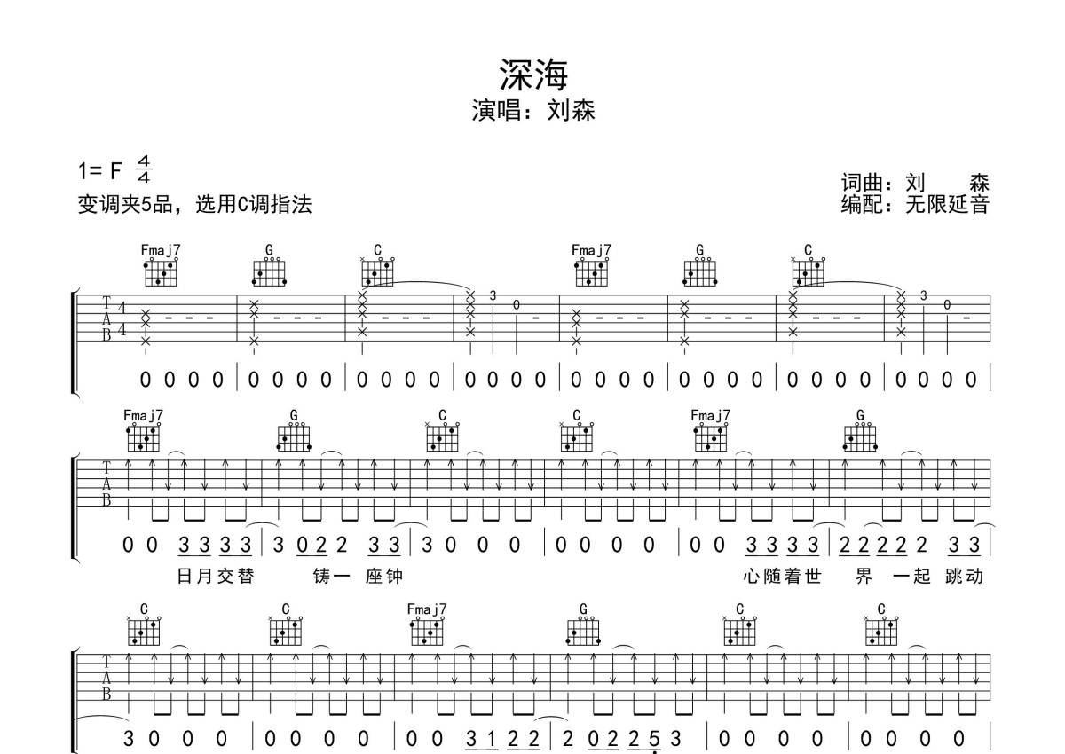 刘森《深海》吉他谱 - C调弹唱六线谱