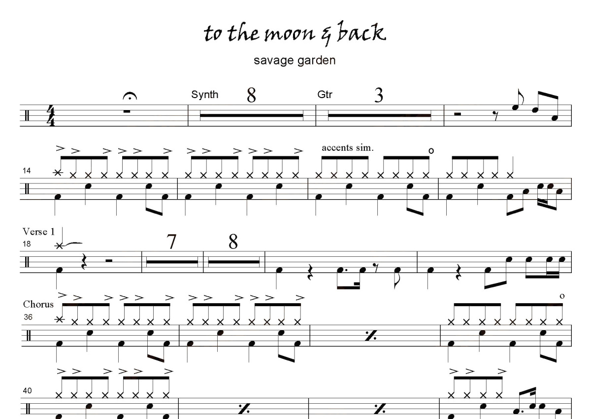 Savage Garden《To The Moon & Back》鼓谱 - 架子鼓谱