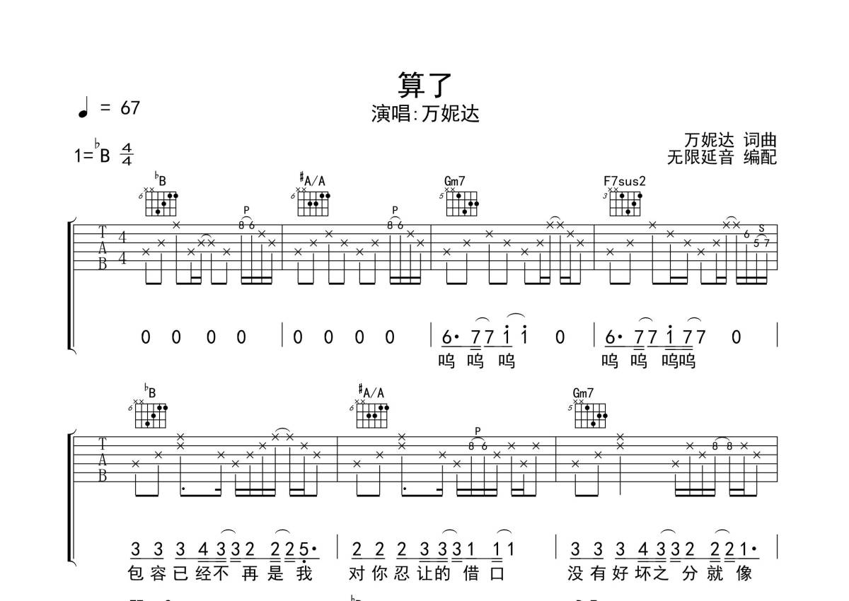 万妮达《算了》吉他谱 - 弹唱六线谱