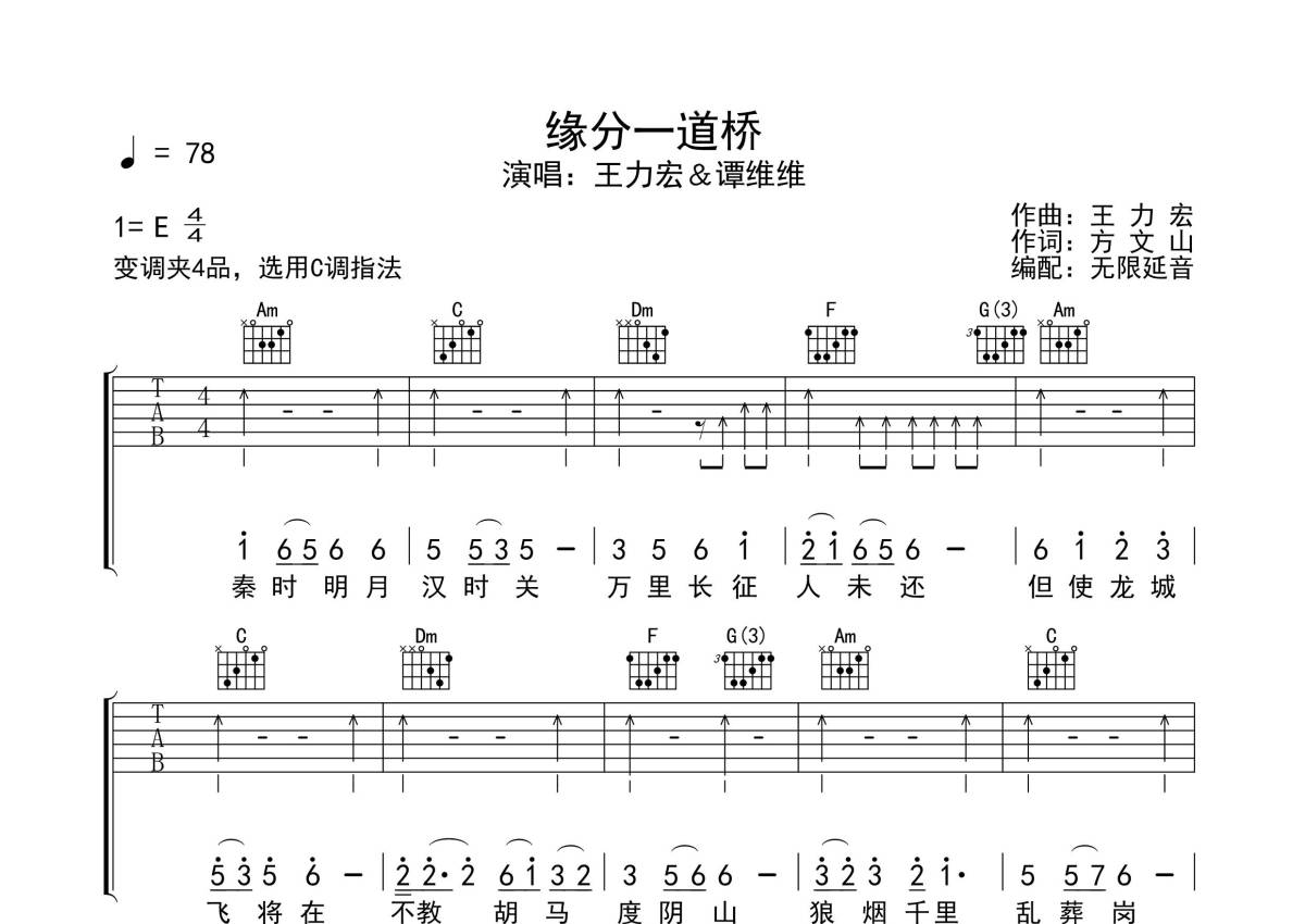 王力宏/谭维维《缘分一道桥》吉他谱 - C调弹唱六线谱