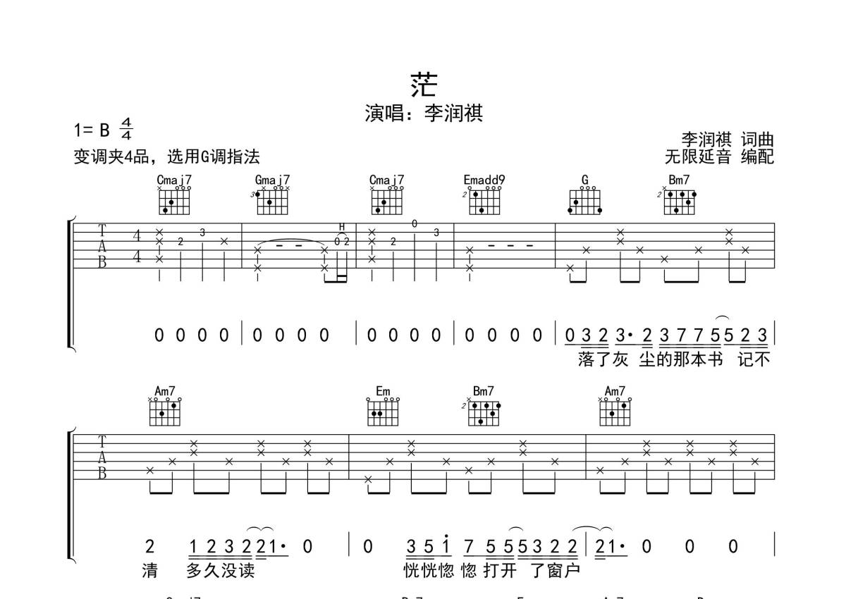 李润祺《茫》吉他谱 - G调弹唱六线谱