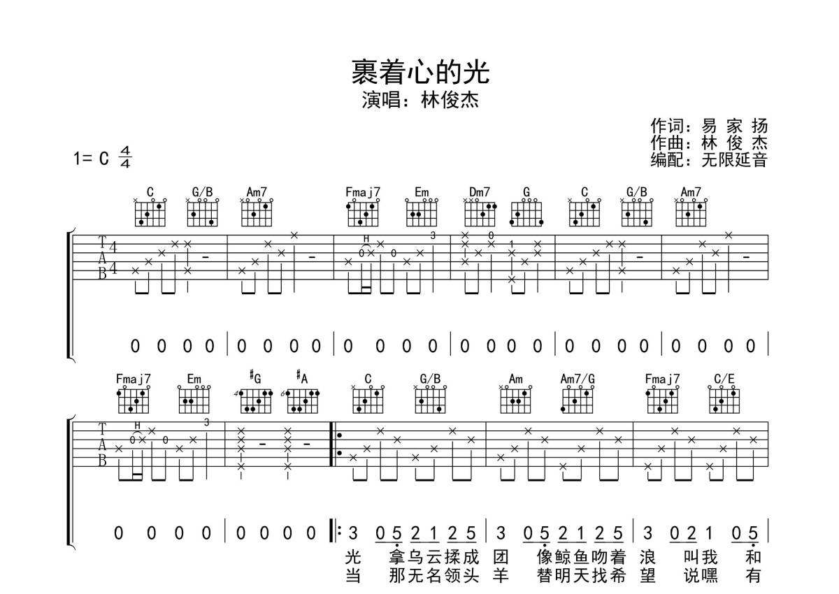 林俊杰《裹着心的光》吉他谱 - C调弹唱六线谱