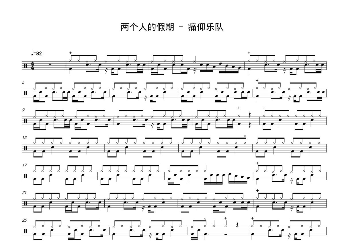 痛仰乐队《两个人的假期》鼓谱 - 架子鼓谱