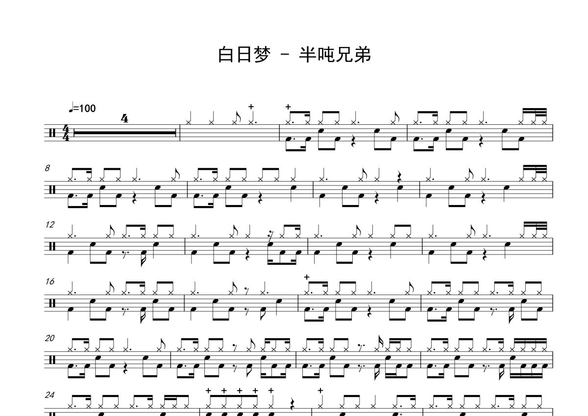 半吨兄弟《白日梦》鼓谱 - 架子鼓谱