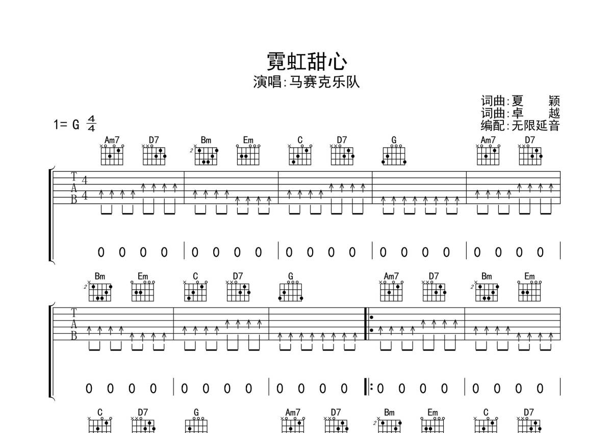 马赛克乐队《霓虹甜心》吉他谱 - G调弹唱六线谱