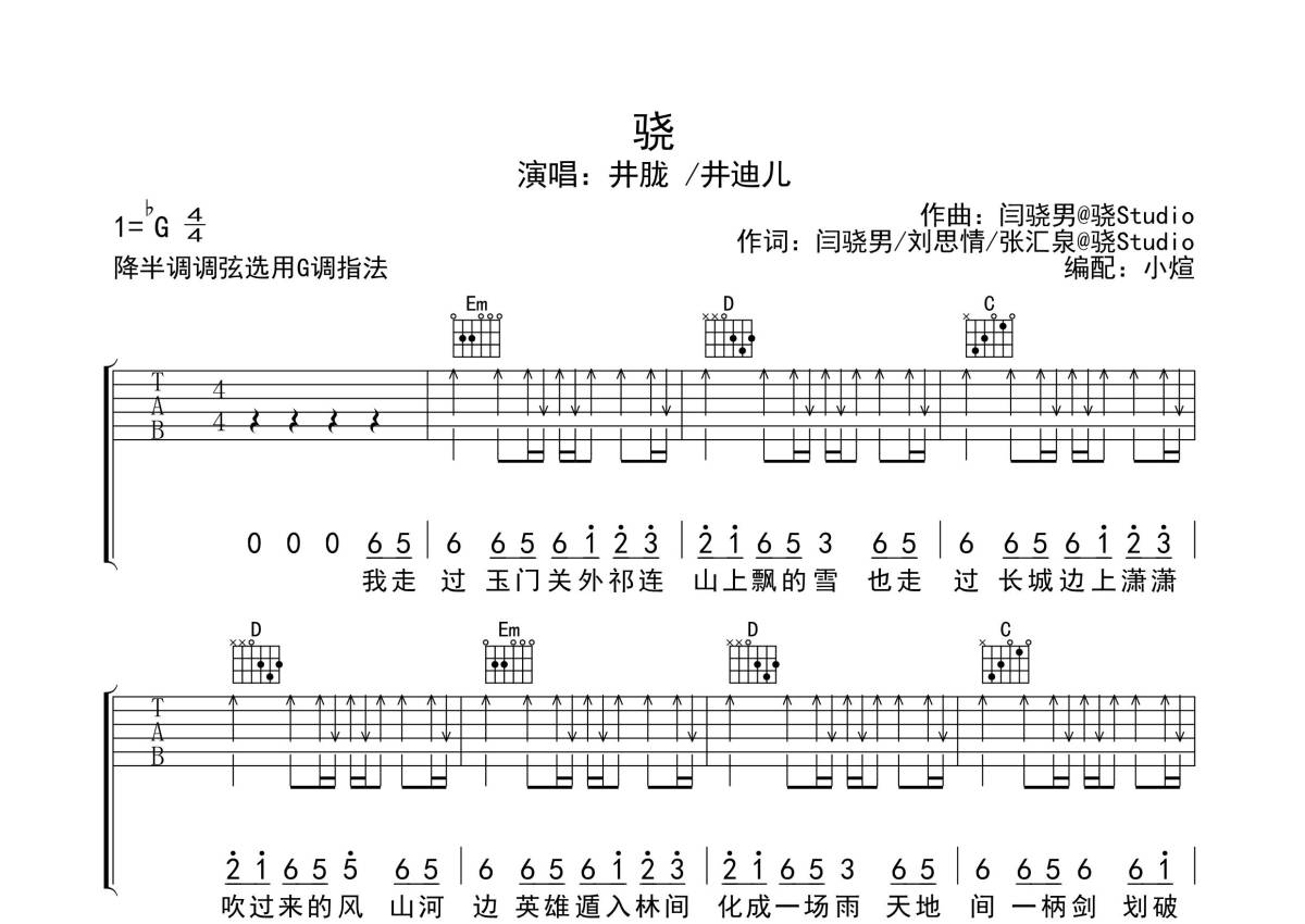 井胧/井迪《骁》吉他谱 - G调弹唱六线谱