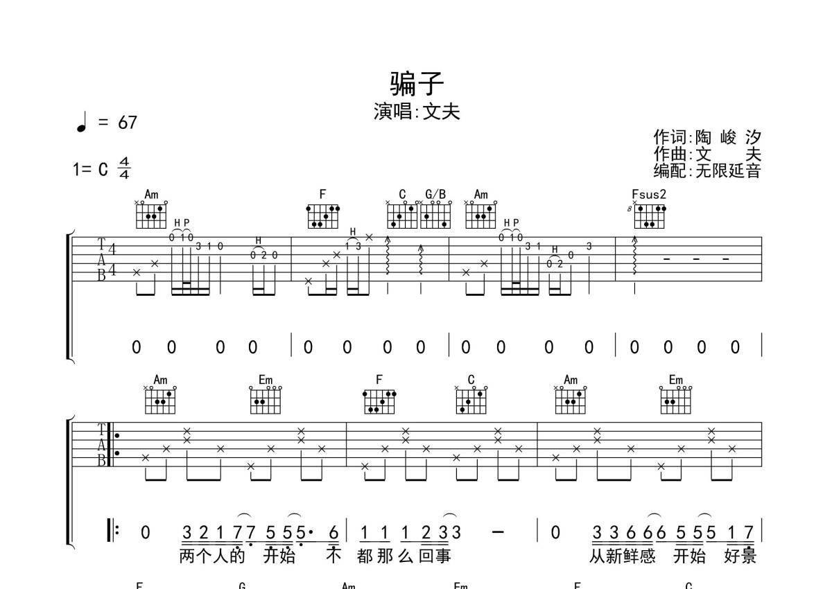 文夫《骗子》吉他谱 - C调弹唱六线谱