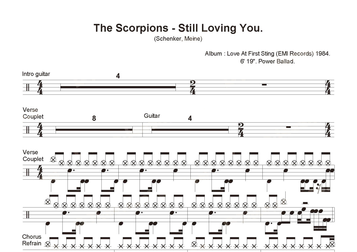 Scorpions《Still Loving You》鼓谱 - 架子鼓谱