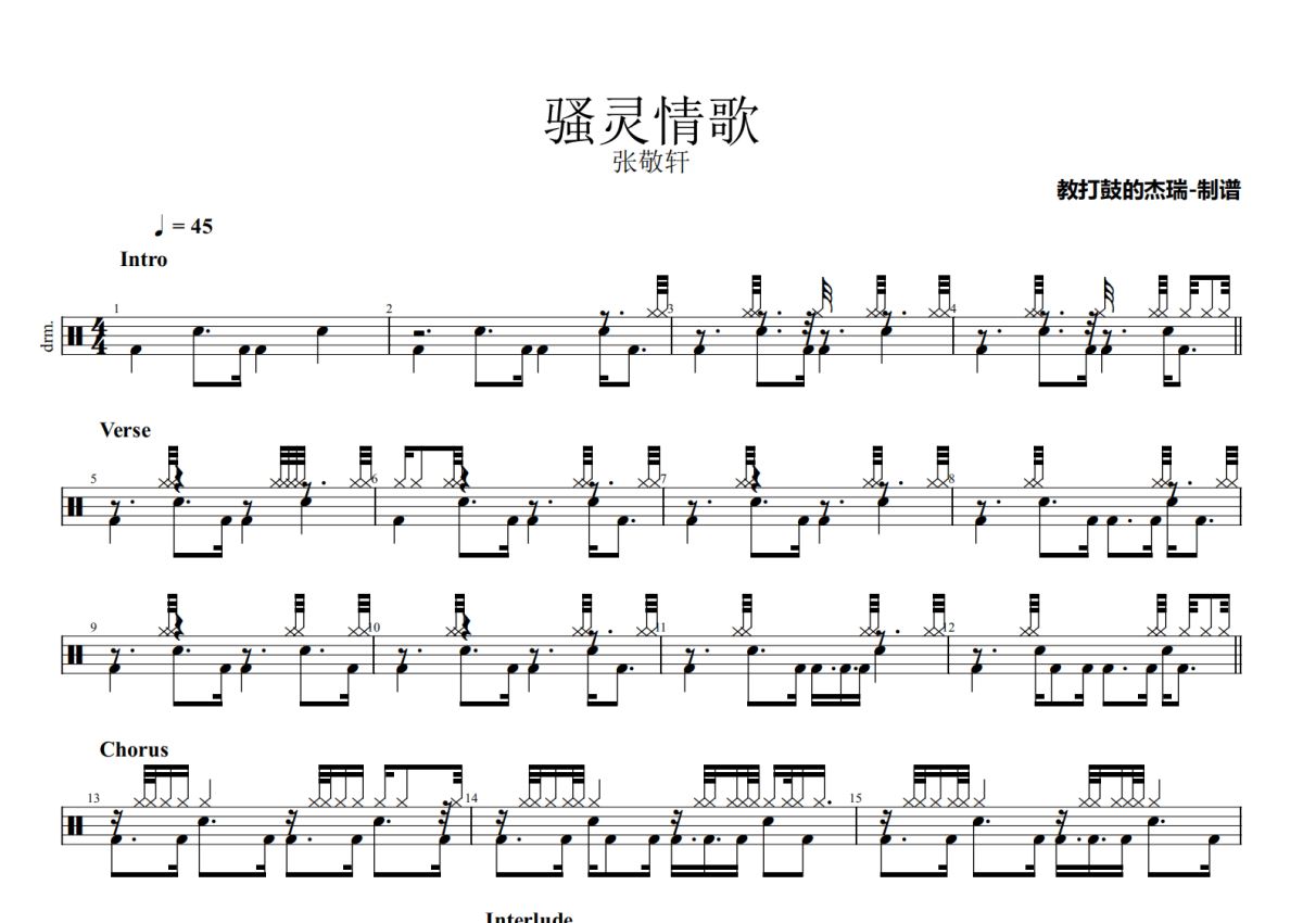 张敬轩《骚灵情歌》鼓谱 - 架子鼓谱