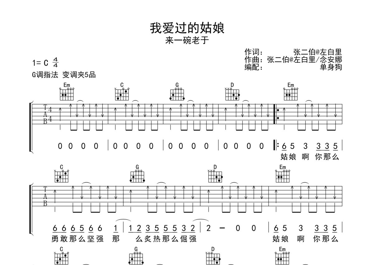 来一碗老于《我爱过的姑娘》吉他谱 - G调弹唱六线谱