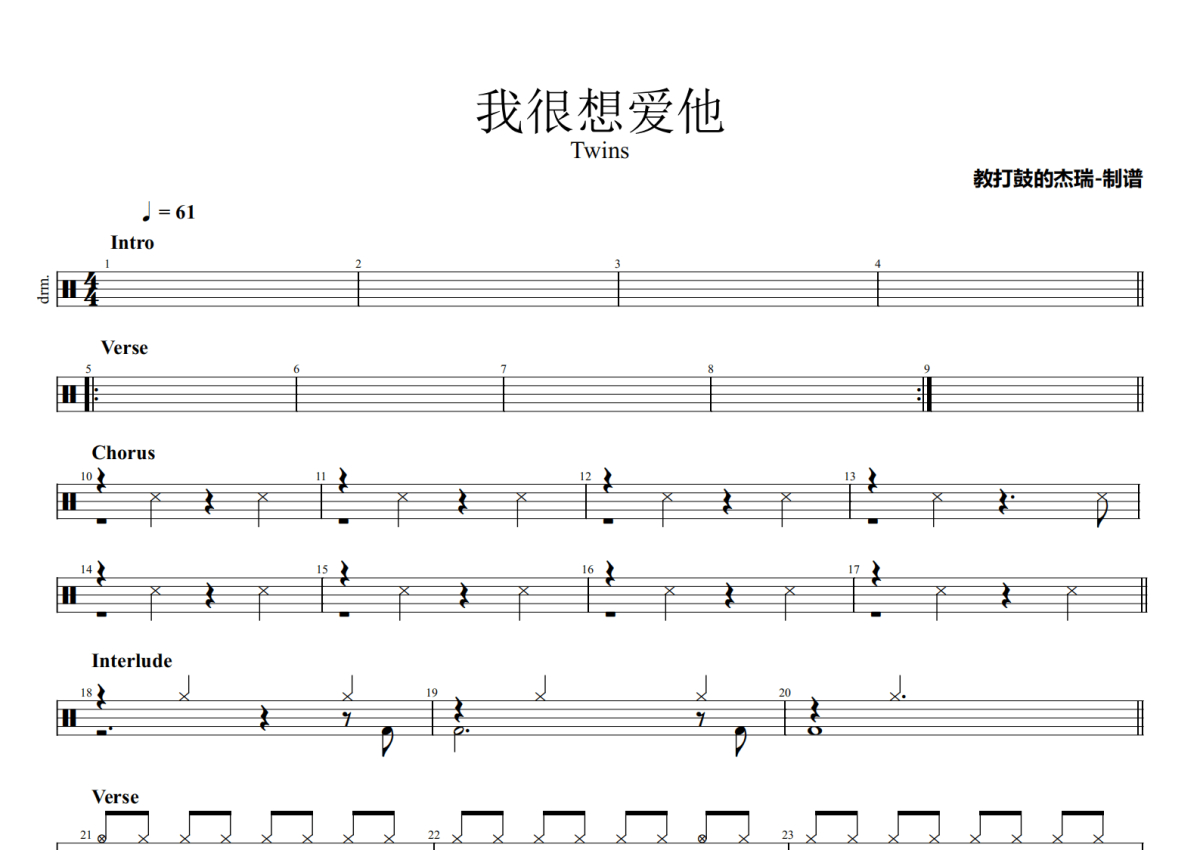 Twins《我很想爱他》鼓谱 - 架子鼓谱