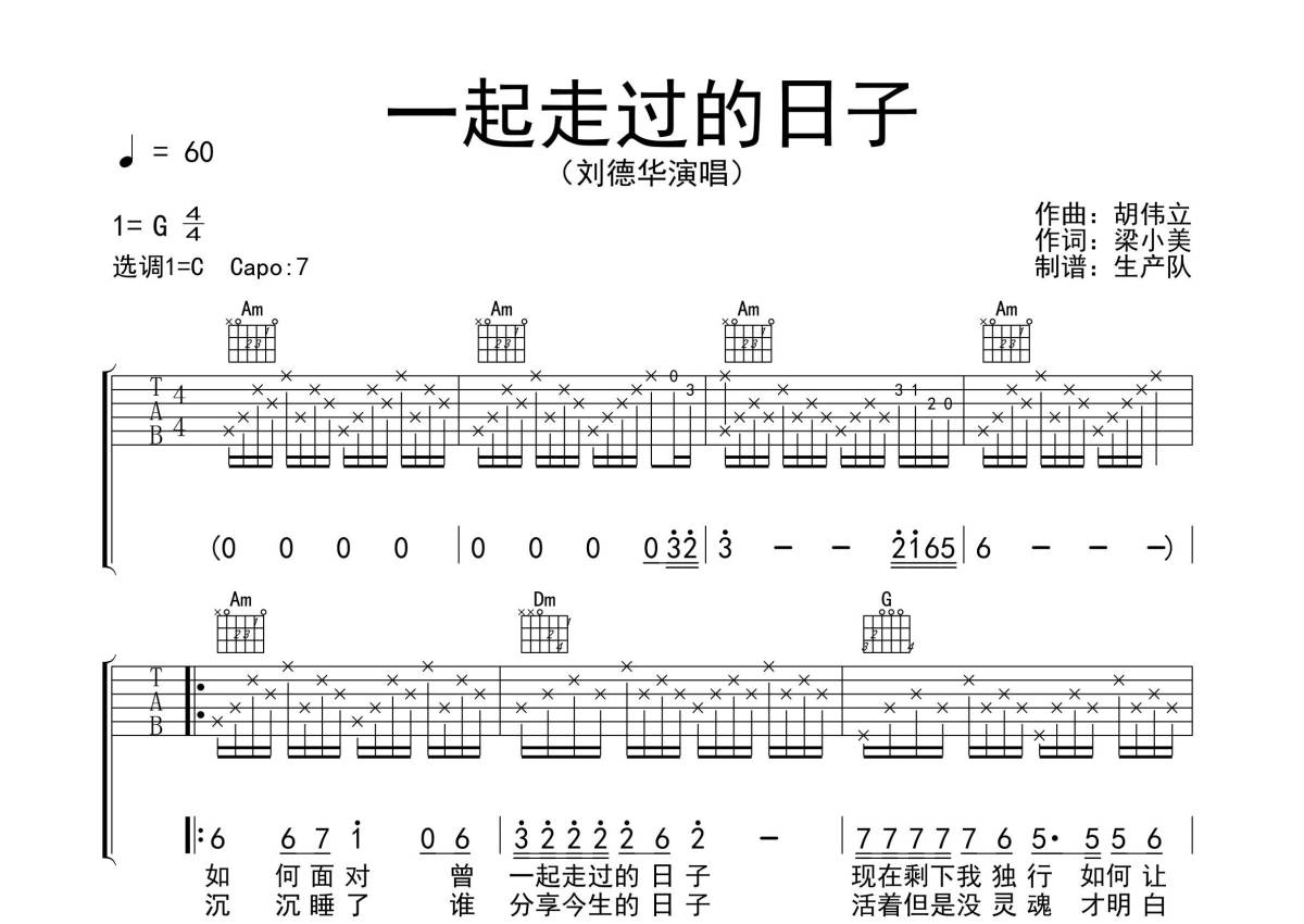 刘德华《一起走过的日子》吉他谱 - C调弹唱六线谱