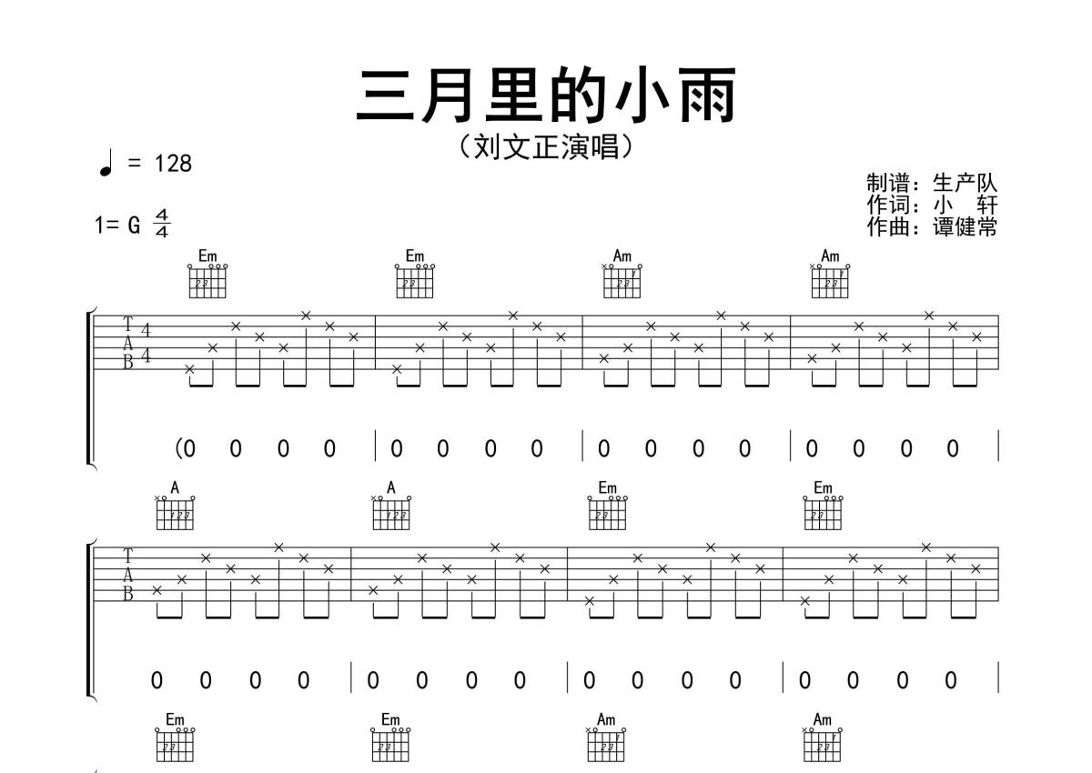 刘文正《三月里的小雨》吉他谱 - G调弹唱六线谱