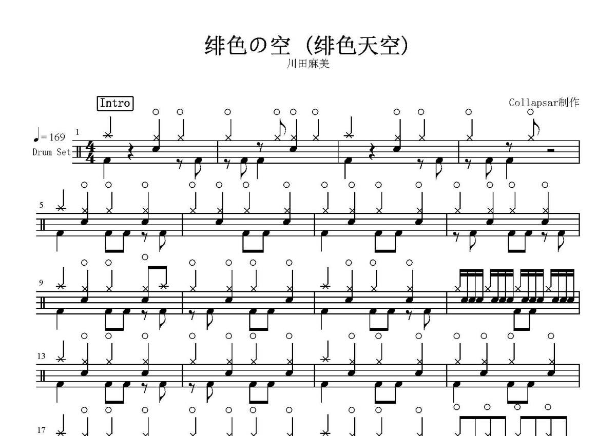 川田麻美《绯色之空》鼓谱 - 架子鼓谱