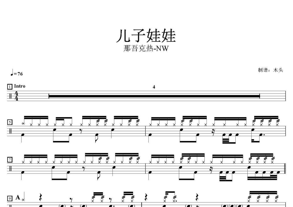 那吾克热-NW《儿子娃娃》鼓谱 - 架子鼓谱
