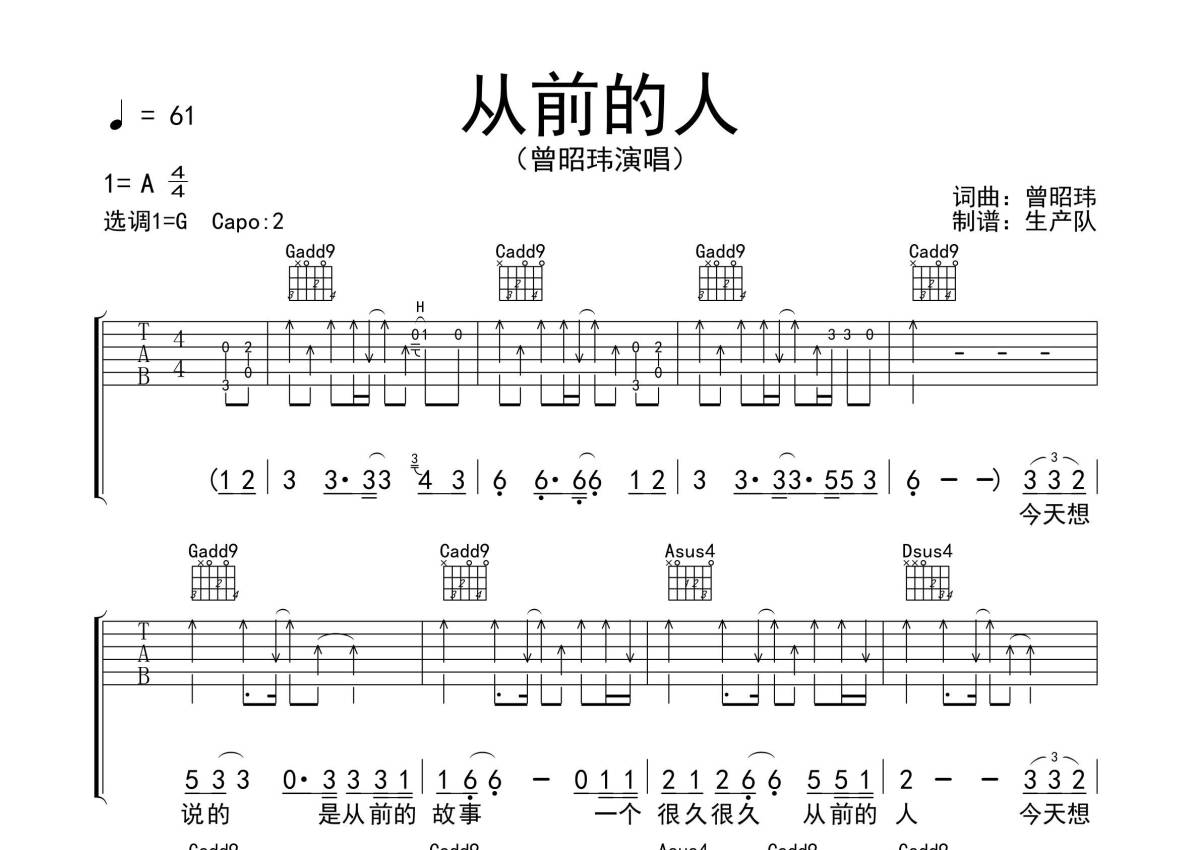 曾昭玮《从前的人》吉他谱 - G调弹唱六线谱