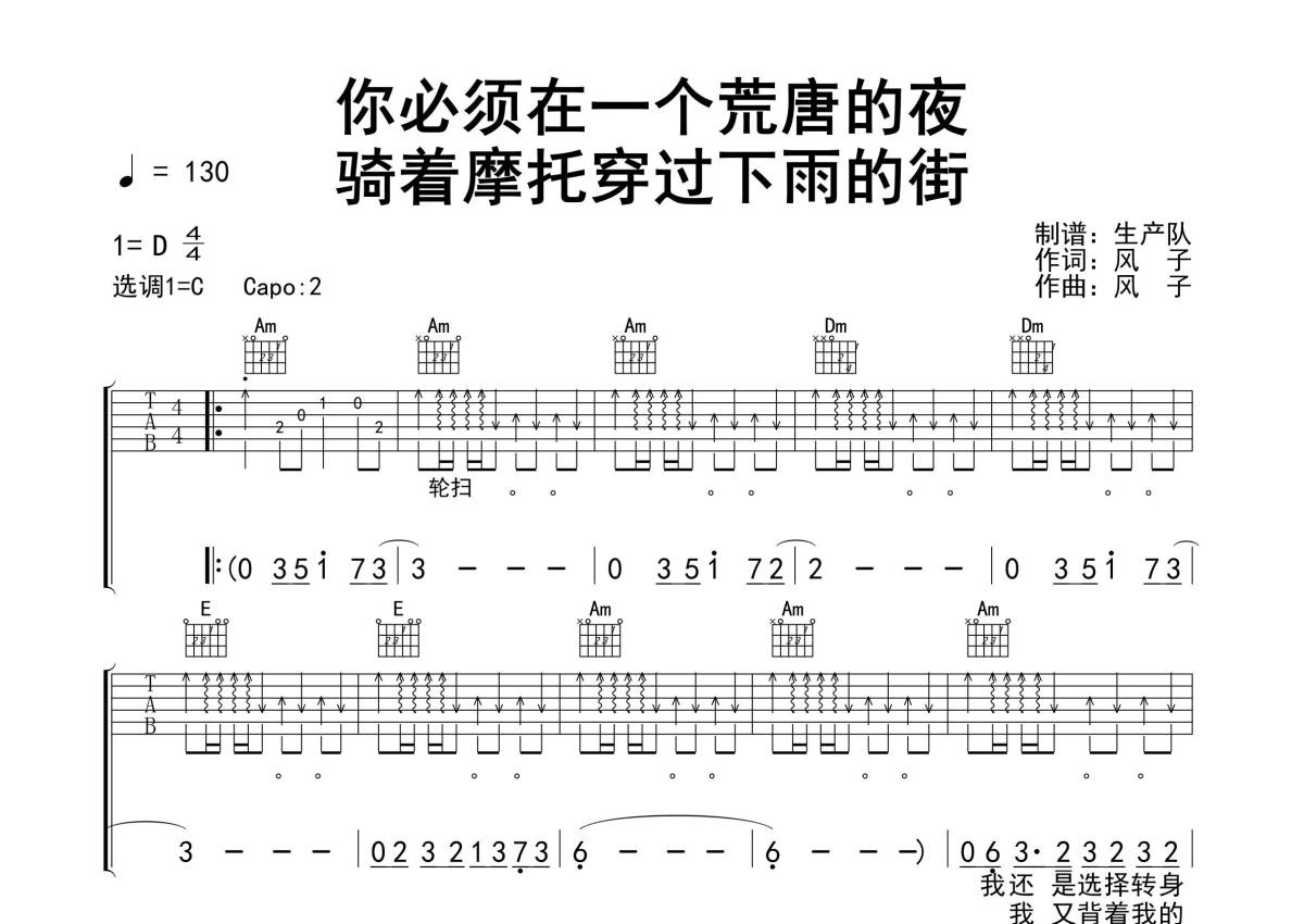 风子《你必须在一个荒唐的夜》吉他谱 - C调弹唱六线谱