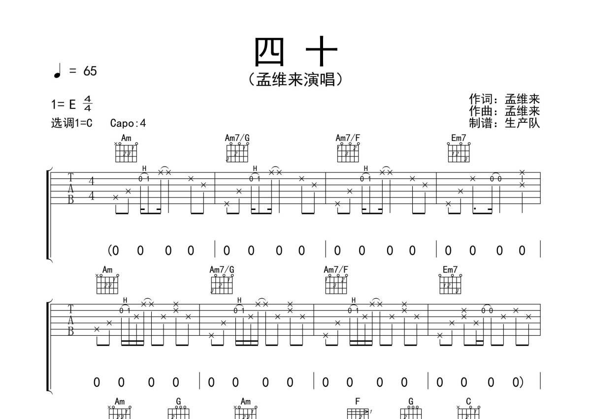 孟维来《四十》吉他谱 - C调弹唱六线谱