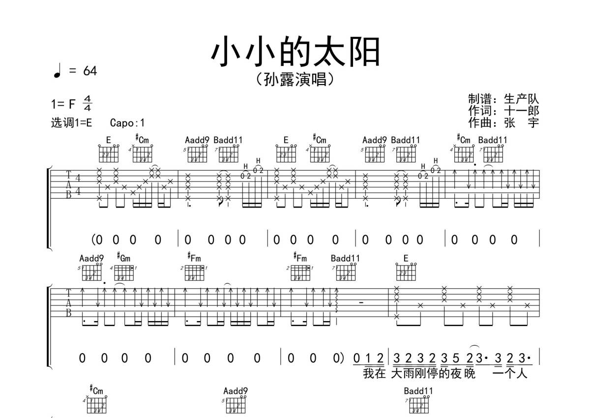 孙露《小小的太阳》吉他谱 - E调弹唱六线谱