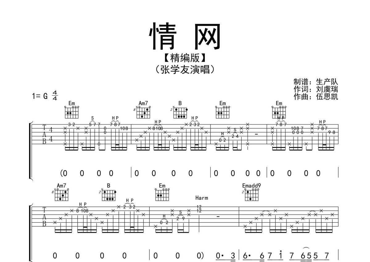 张学友《情网》吉他谱 - G调弹唱六线谱