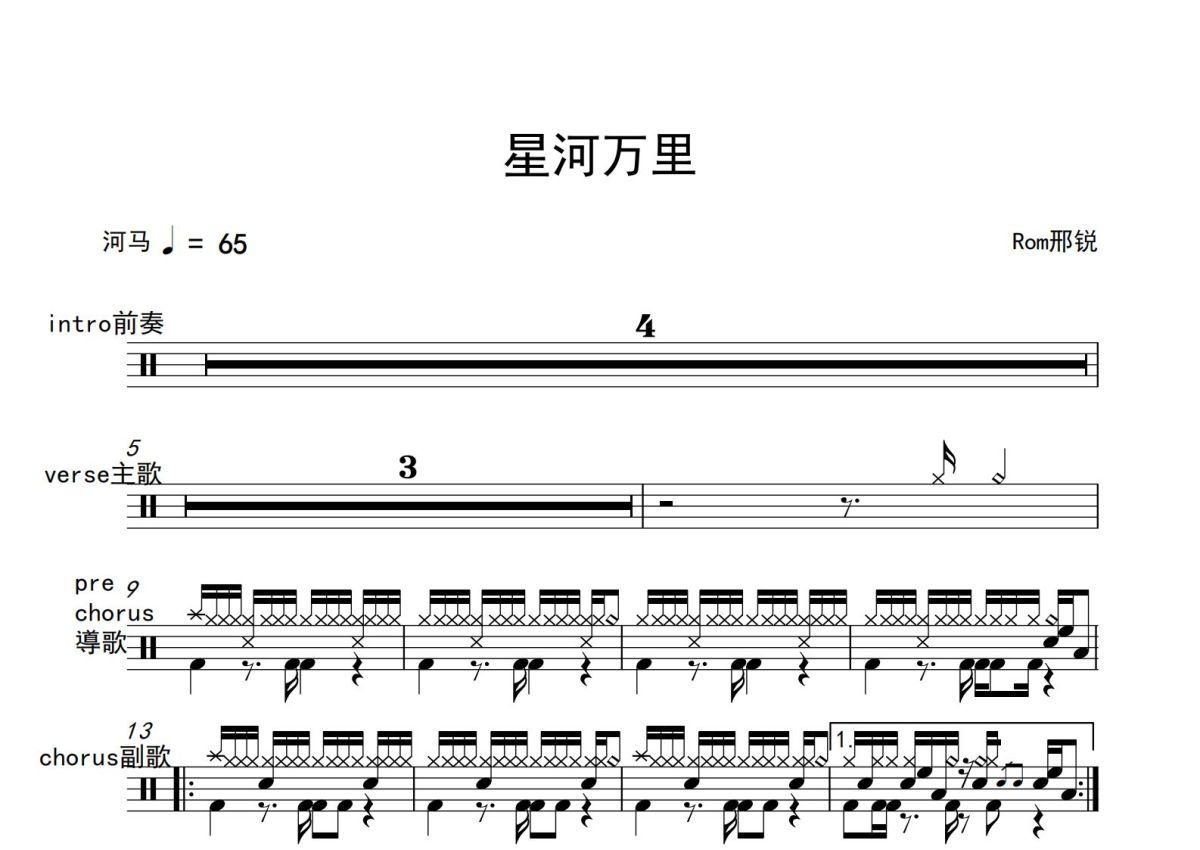 Rom邢锐《星河万里》鼓谱 - 架子鼓谱