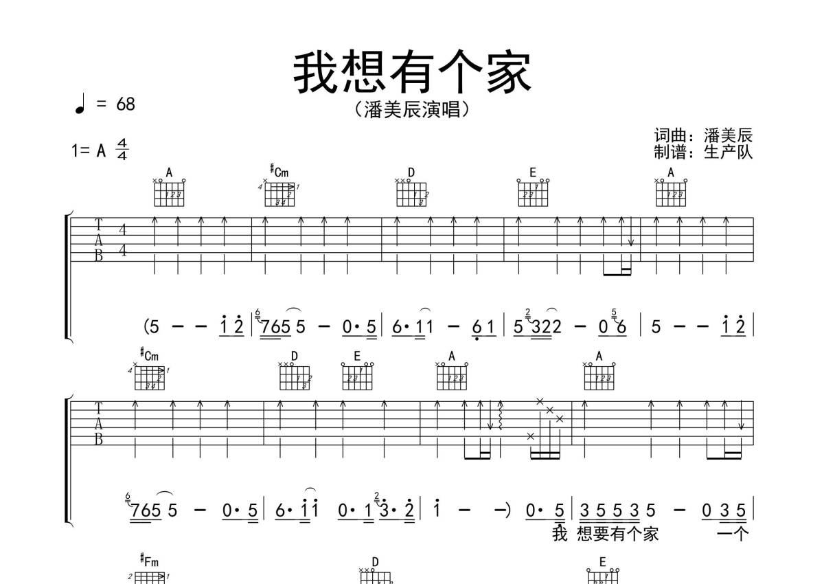 潘美辰《我想有个家》吉他谱 - A调弹唱六线谱