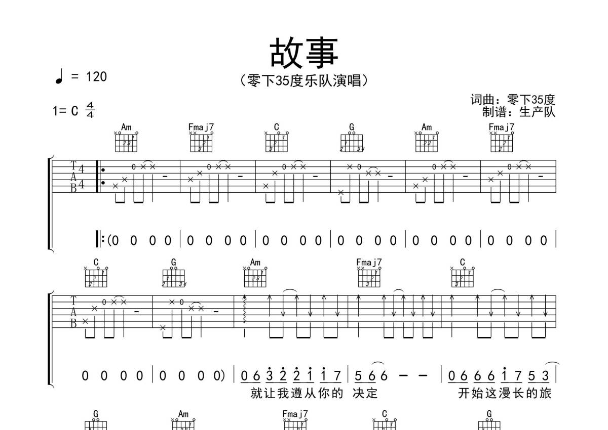 零下35度乐队《故事》吉他谱 - C调弹唱六线谱