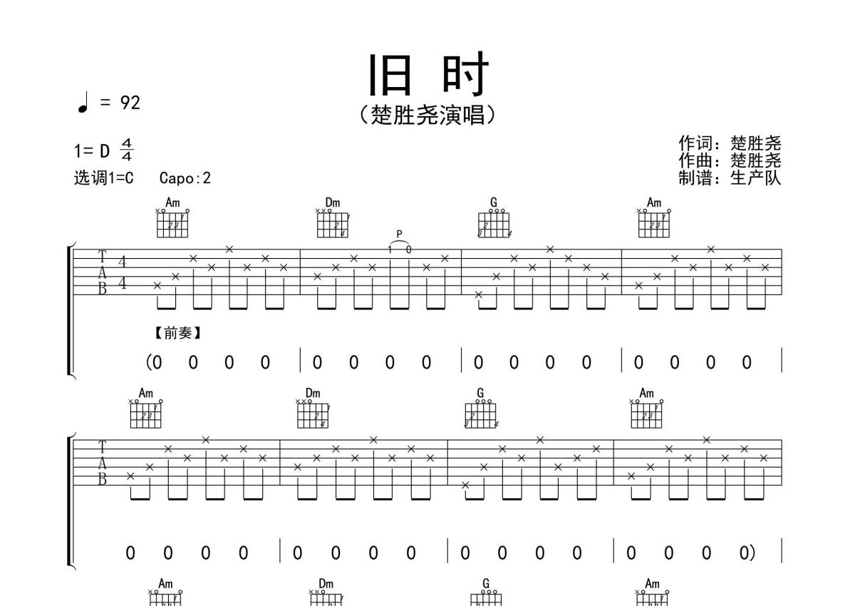 楚胜尧《旧时》吉他谱 - C调弹唱六线谱