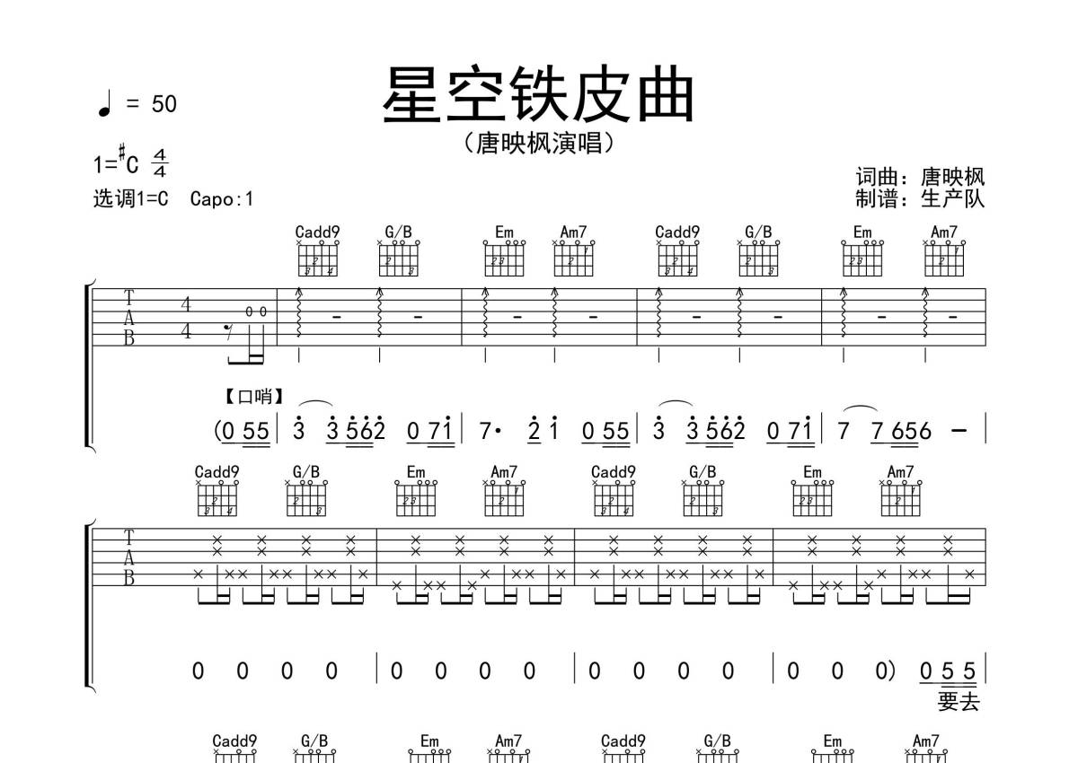 唐映枫《星空铁皮曲》吉他谱 - C调弹唱六线谱