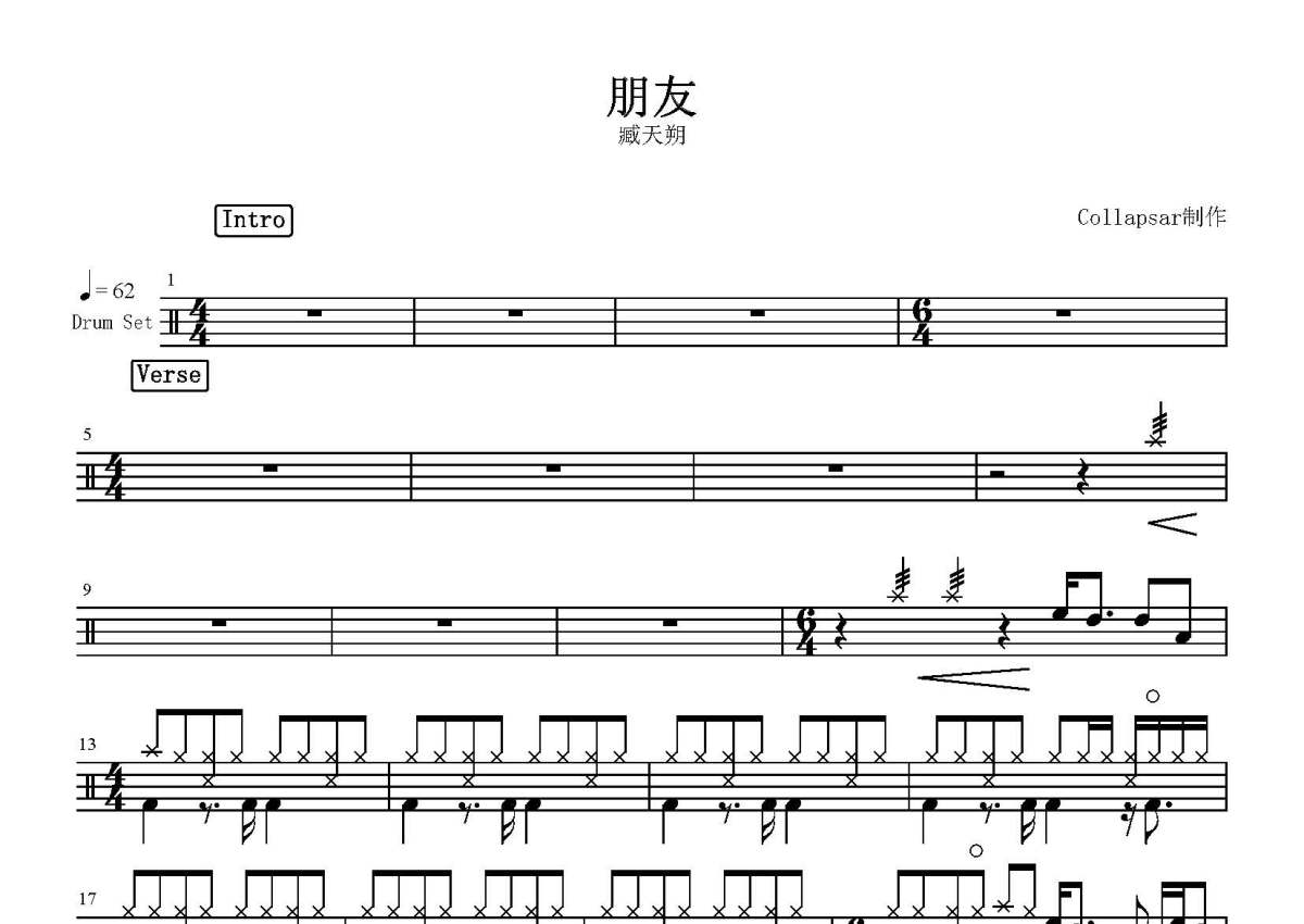 臧天朔《朋友》鼓谱 - 架子鼓谱