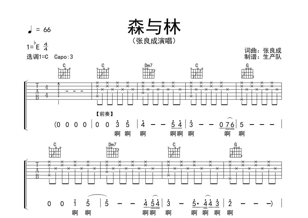 张良成《森与林》吉他谱 - C调弹唱六线谱
