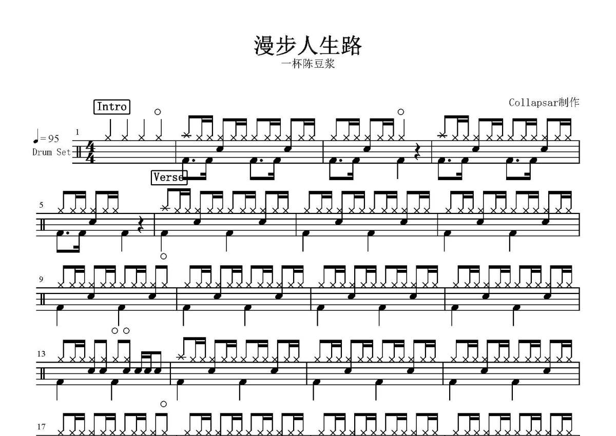 一杯陈豆浆《漫步人生路》鼓谱 - 架子鼓谱