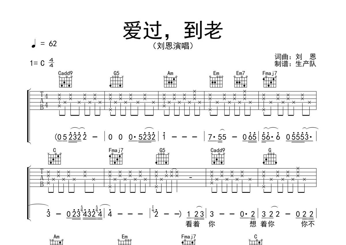 刘恩《爱过,到老》吉他谱 - C调弹唱六线谱