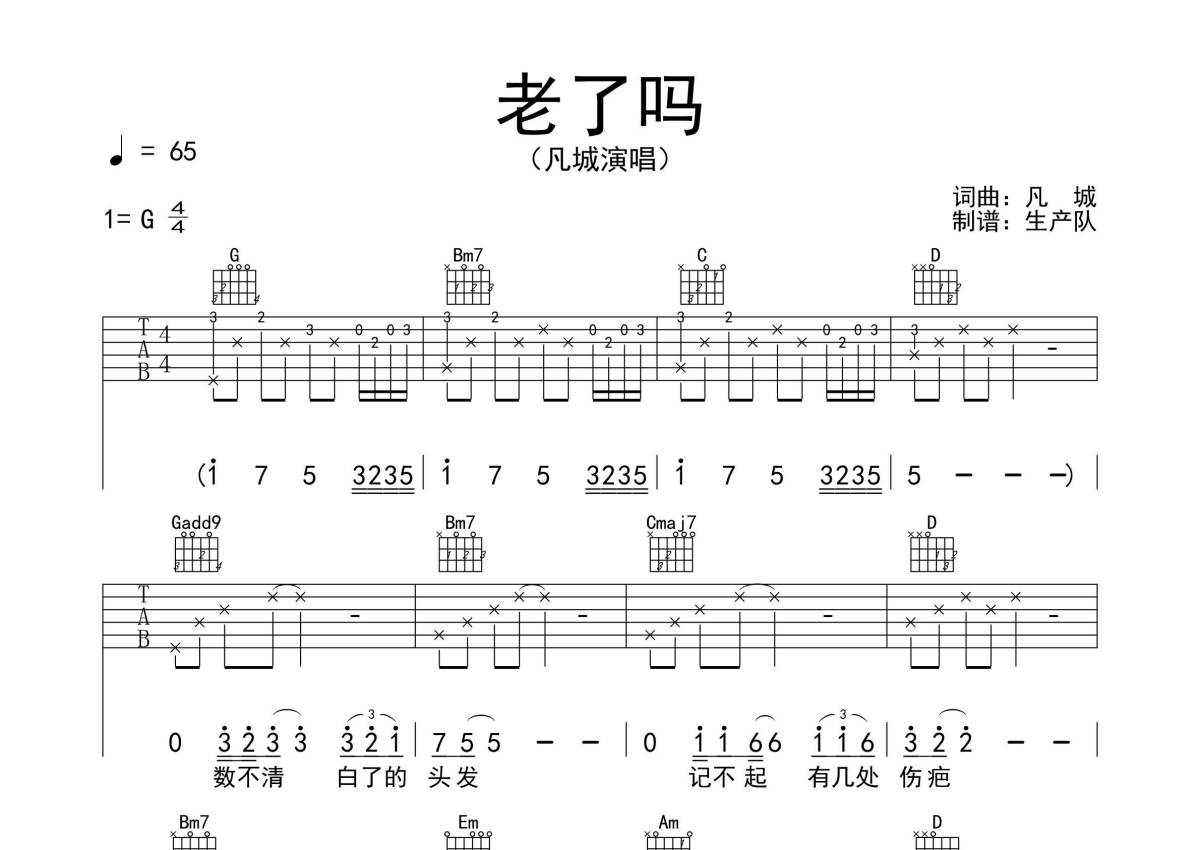 凡城《老了吗》吉他谱 - G调弹唱六线谱
