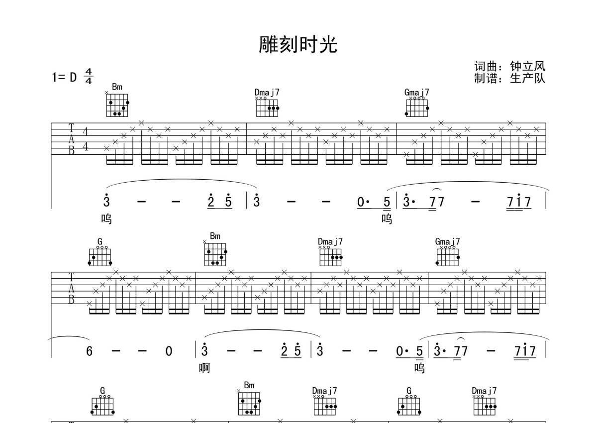 钟立风《雕刻时光》吉他谱 - D调弹唱六线谱
