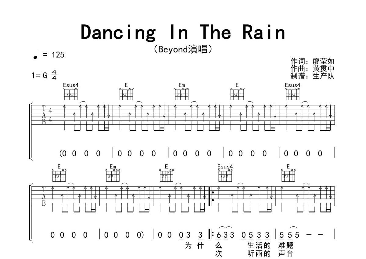 Beyond《Dancing In The Rain》吉他谱 - G调弹唱六线谱