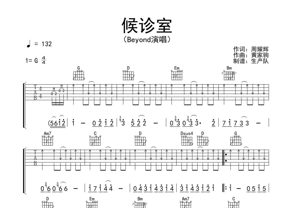 Beyond《候诊室》吉他谱 - G调弹唱六线谱
