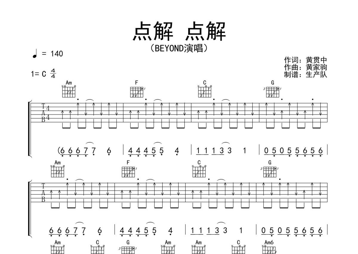 Beyond《点解点解》吉他谱 - C调弹唱六线谱