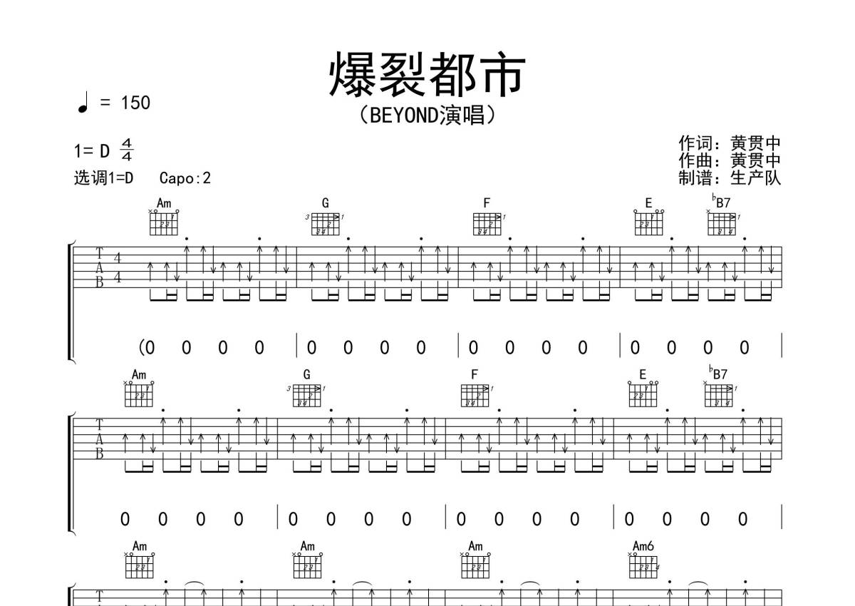 Beyond《爆裂都市》吉他谱 - C调弹唱六线谱