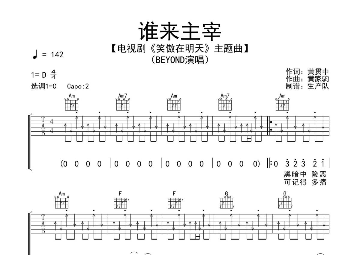 BEYOND《谁来主宰》吉他谱 - C调弹唱六线谱