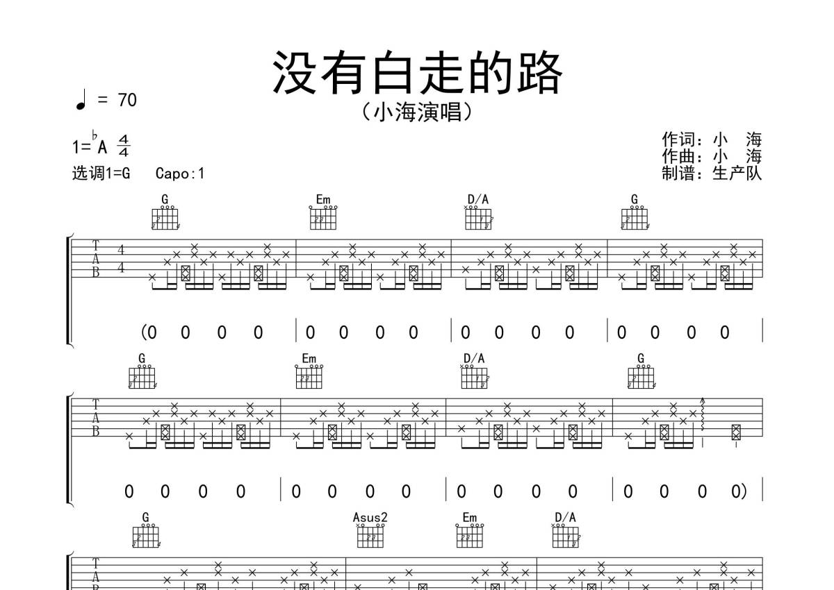 小海《没有白走的路》吉他谱 - G调弹唱六线谱