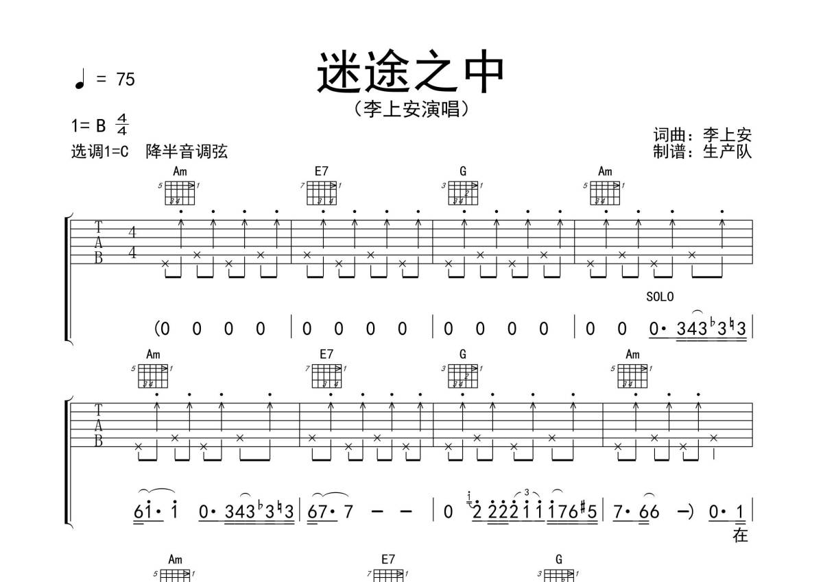 李上安《迷途之中》吉他谱 - C调弹唱六线谱