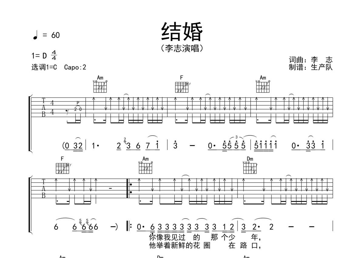 李志《结婚》吉他谱 - C调弹唱六线谱