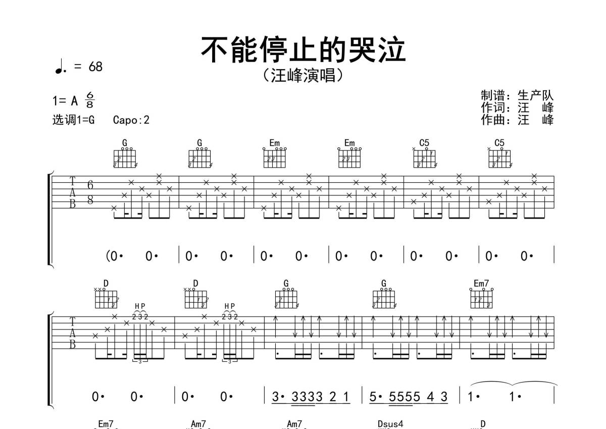 汪峰《不能停止的哭泣》吉他谱 - 弹唱六线谱